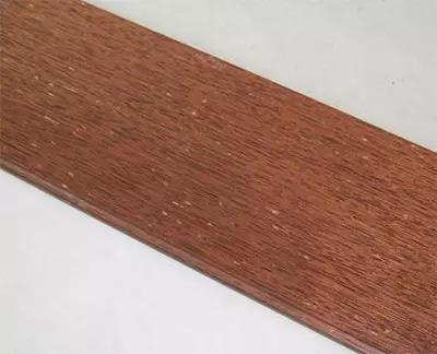 又是一種“花梨”木材,本名木莢豆,木種心材紅褐色,具有深鉤的帶狀條紋,與邊格區(qū)別明顯,邊材窄且淺紅白色;生長輪明顯;由于有樹脂沉淀,木材帶深色的斑點;木材具有光澤;無特殊氣味;紋理不規(guī)則交錯;結構細且均勻;耐腐性很強;木材甚重,強度大,在裝修上主要用作地板材料、裝飾板等。