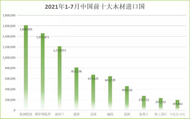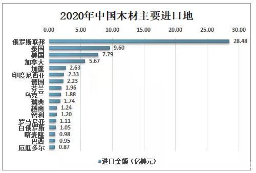 2020年中國主要木材進口地中美國、加拿大等北美國家進口排名分別位列第三、第四;而在最新的上半年國內木材進口量中美國和加拿大僅排名第五、第八名。