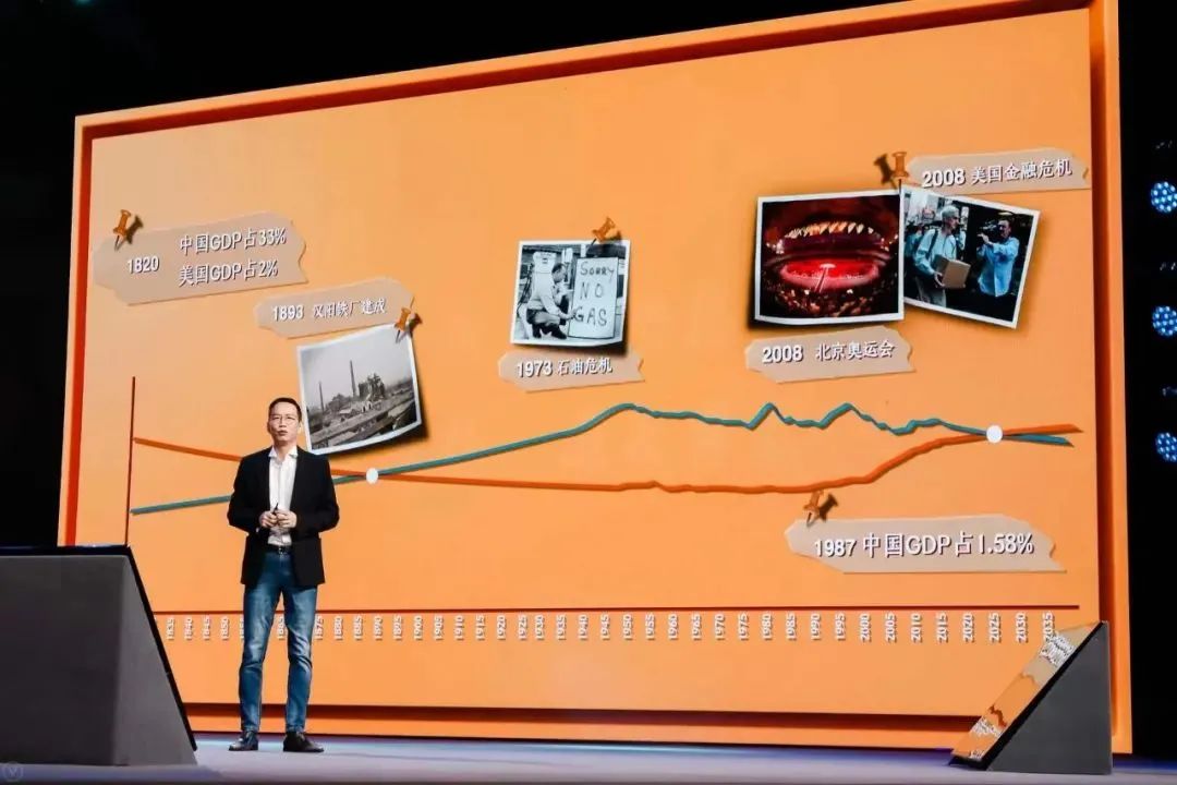 吳曉波指出:在中國的200年國運周期里,到了2021年,中國的經濟總量是美國的70%。如果中國的經濟增長曲線繼續往前走的話,應該在2028年左右,超過美國,重新成為全球第一大經濟體。