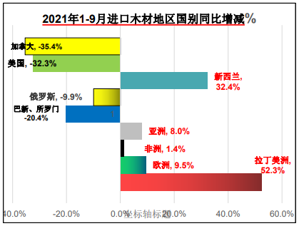 在這樣的前提下,北美木材在中國的份額逐年縮?。?016年21.2%,2017年19.2%,2018年16.7%,2019年13.2%,2020年10.4%,2021年1-9月8.9%)。